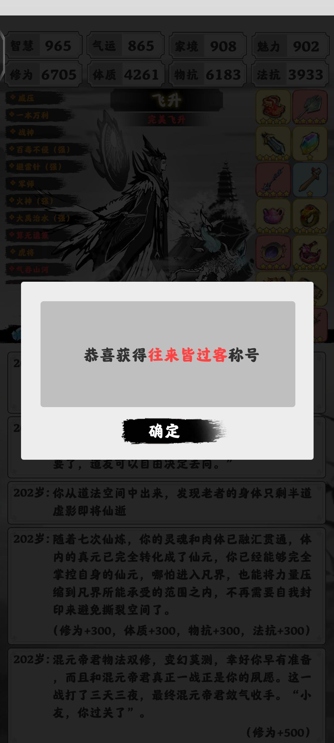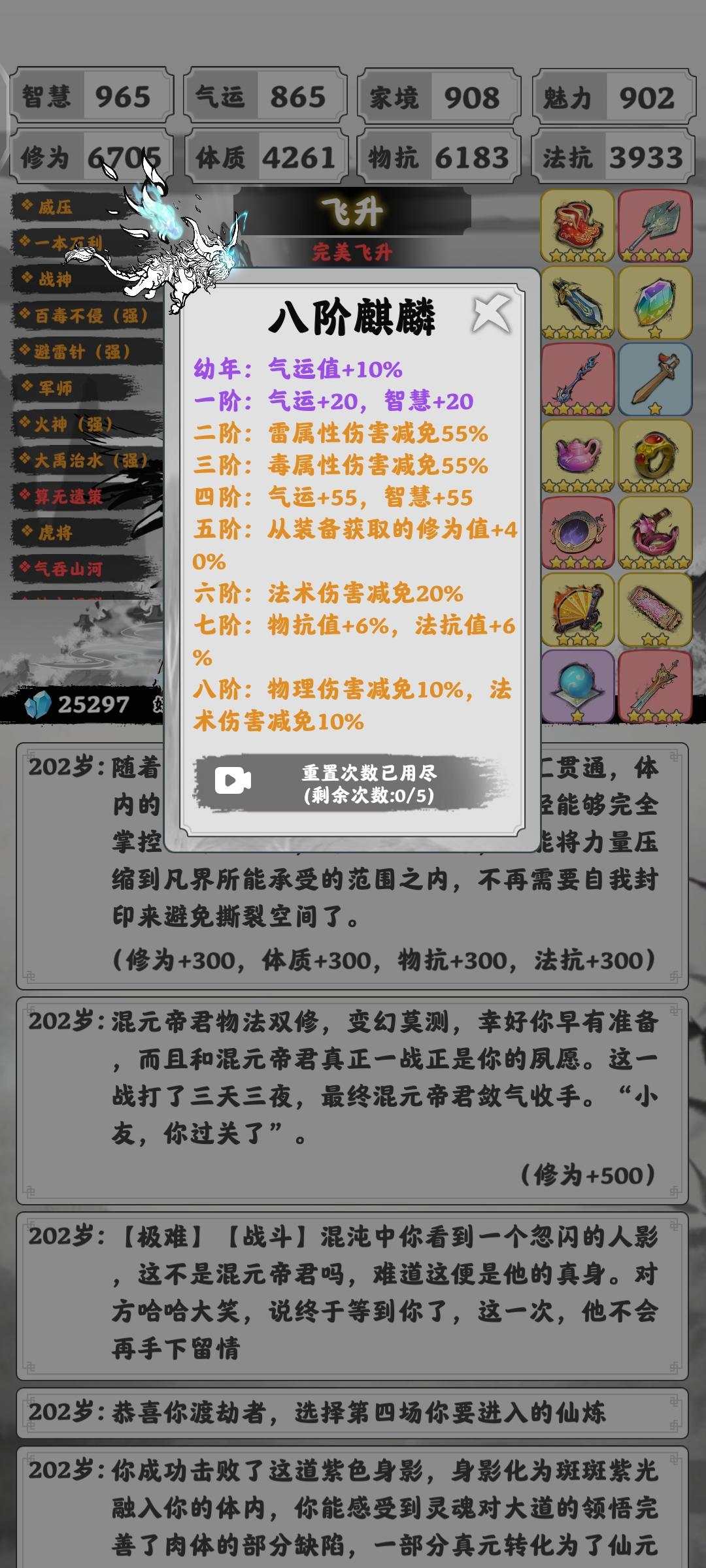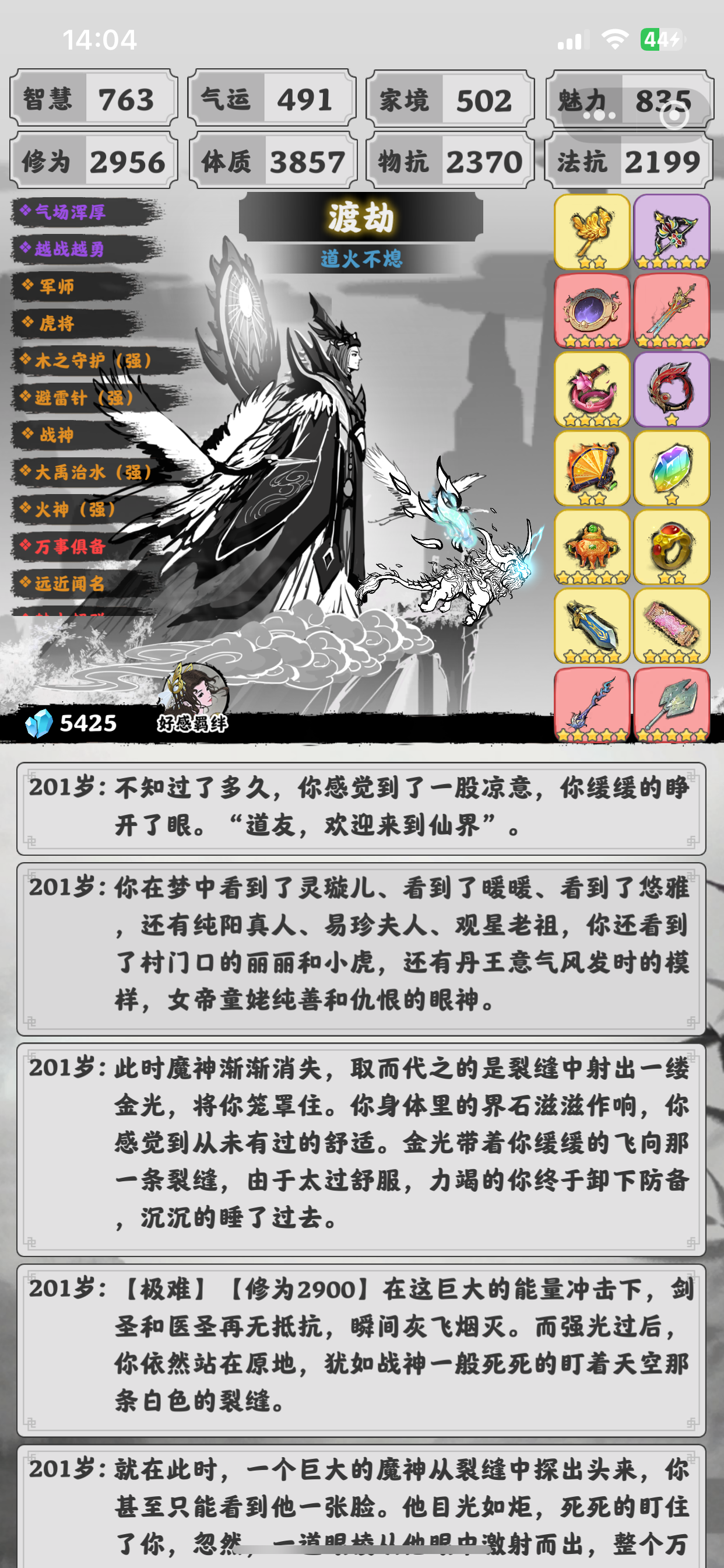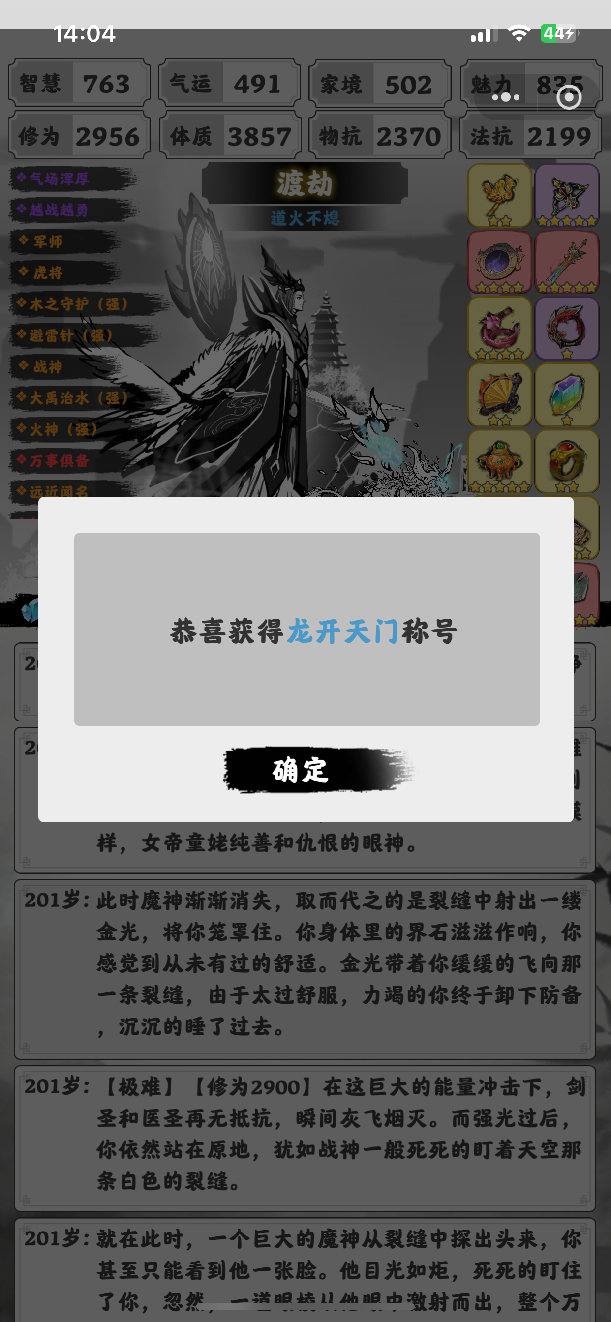 终于在群大佬的帮助下做出来了,写下了此篇攻略。必要剧情选择:发现女儿用回复术选2找璇儿,185进极难,201偷袭剑台。开局选择自由蛟龙璇儿,称号道尽,加点多加家境,璇儿会很缺钱。扇子开局,看第一词条是智慧的话补家境鞋或者走灵阳,是家境的话,我们直接走进丹墨。剑二三丹王水月镜的事件老生常谈了,最好都有,有俩就够了,反正多出少吃词条。做两法抗紫,中期自由出法抗装和体质剑,补天石优先一些(家境