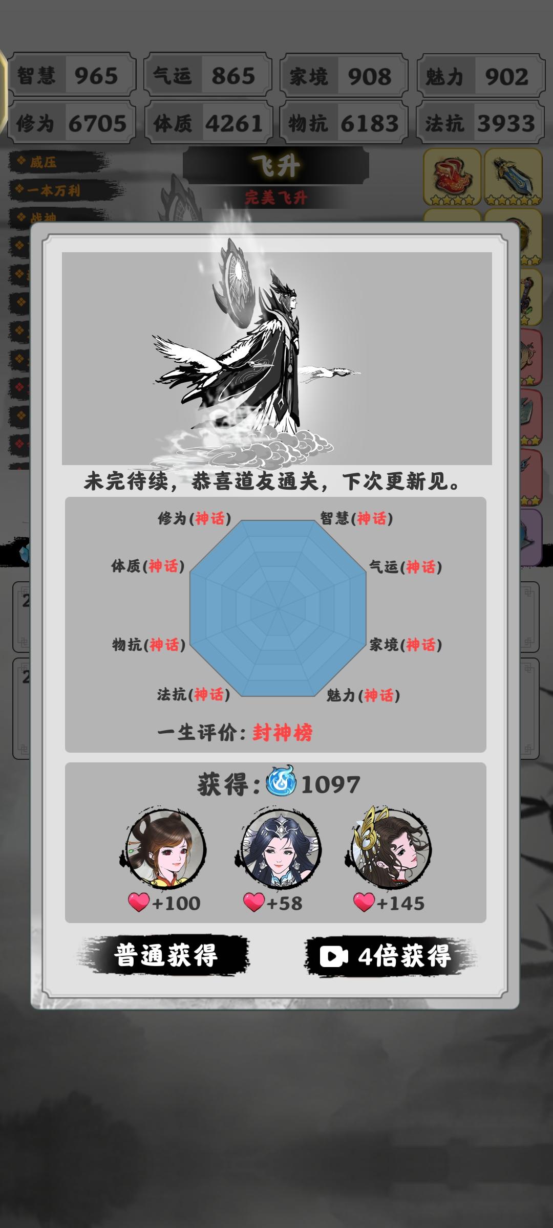 温馨提示:第一次飞升不建议独自一人,谁劝都别听,除非计算能过官方QQ群1群8736215102群10191414763群7377495934群671362280通关攻略 以仙道漫漫为例 20级真元等级广告30点共50点10智慧20气运10家境10魅力0体质基本上全部都用 华天宗统治(物抗家境魅力多 ) 自由(法抗气运智慧多)麒麟法抗多 蛟龙物抗多一般是统治配麒麟 自由配蛟龙(