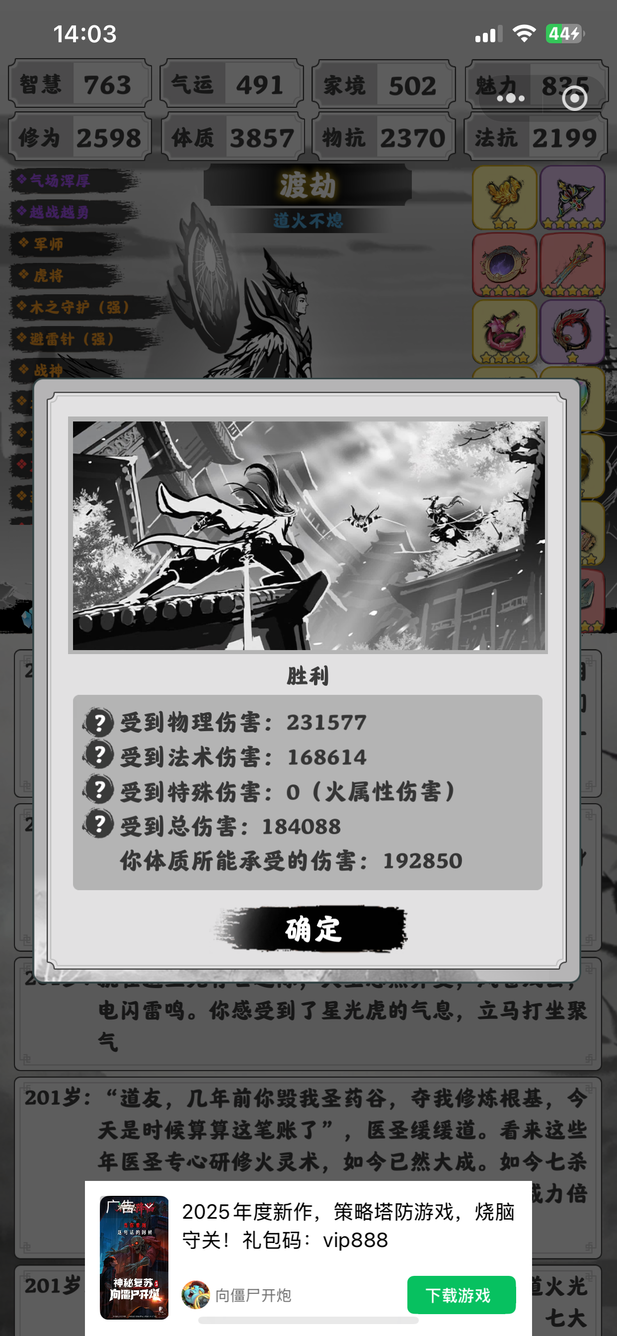 道火不熄打龙开天门,一遍过,还顺手拿了完美飞升,第二战物法差一点点就输了,就差那么四百左右,幸好过了,还顺手拿了火神传奇,仙炼第一战选的能量被当路边一条踢死了,不得不说剧情很不错