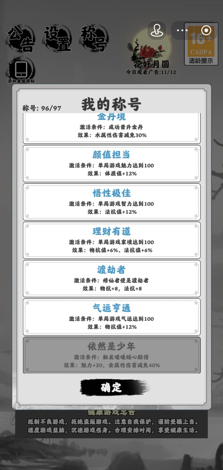 玩了三天,目前悠雅三阶,已达成万法归一和仙道满满,写个新手攻略,给新玩家个个人建议。【习惯喷一嘴】:先说下这游戏唯一的缺点,就是每一局如果没玩完,退出就没了……【玩法概述】:游戏一共要进行200年,每年都会根据角色属性/宗门/剧情选择触发各种不同的剧情,同时每过几年可以买法宝,游戏就是在剧情选择和法宝选择中推进!【游玩目标】:每完成一局会增加三个红颜知己的好感度和技能点,技能点能增加开局属性