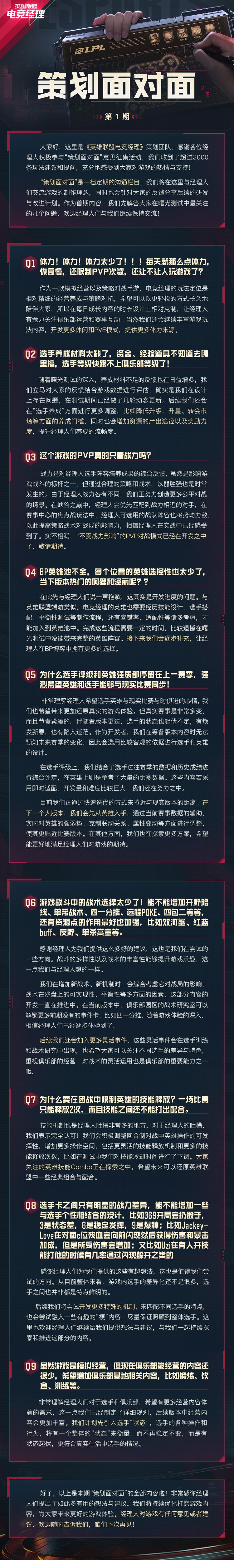 《英雄联盟电竞经理》策划面对面第1期来啦,看看有没有你关心的问题。