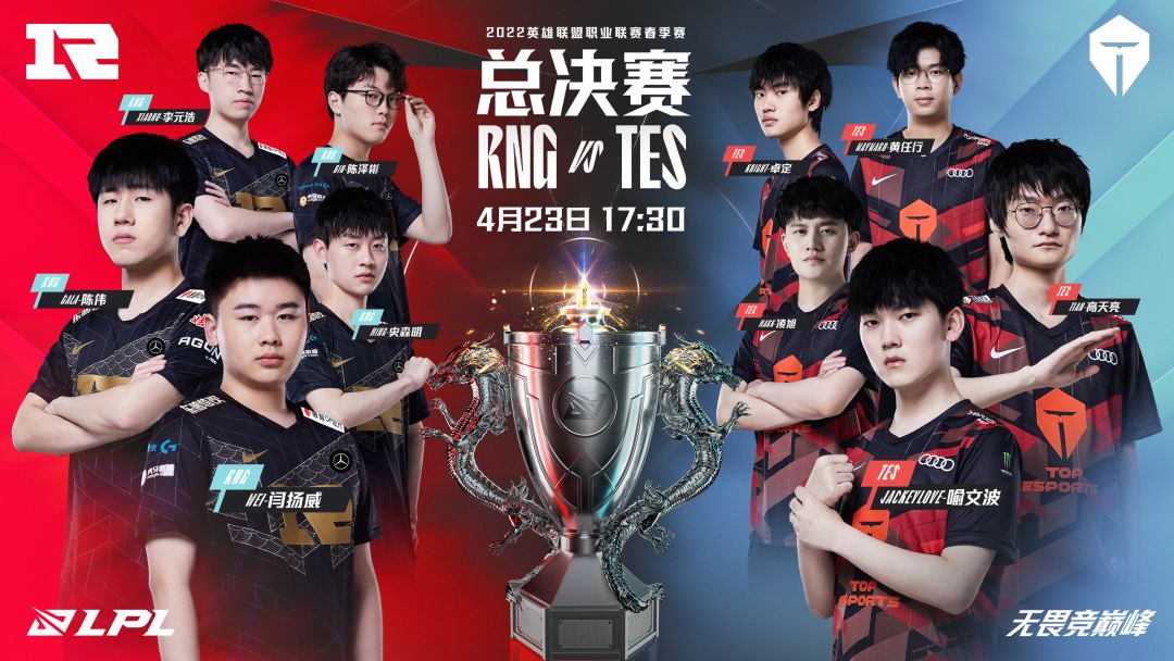 RNG vs TES(BO5),4月23日17:30 穿越风暴,踏过荒野,春日战歌奏响最强音 至尊对决,LPL冠军画卷铺开新的一页