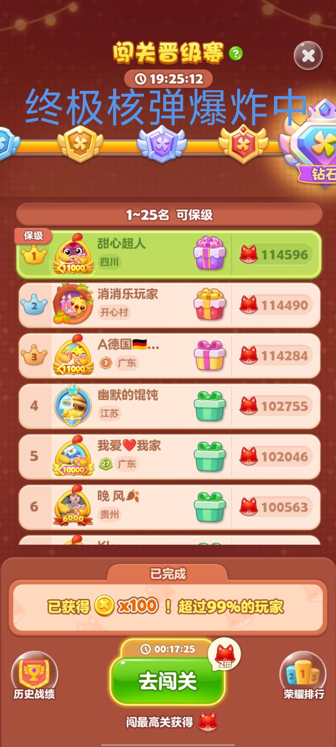 然后大退出去,第二天重新登陆,发现这一关步数刷新了,还在这关没出去,然后我连胜没断。