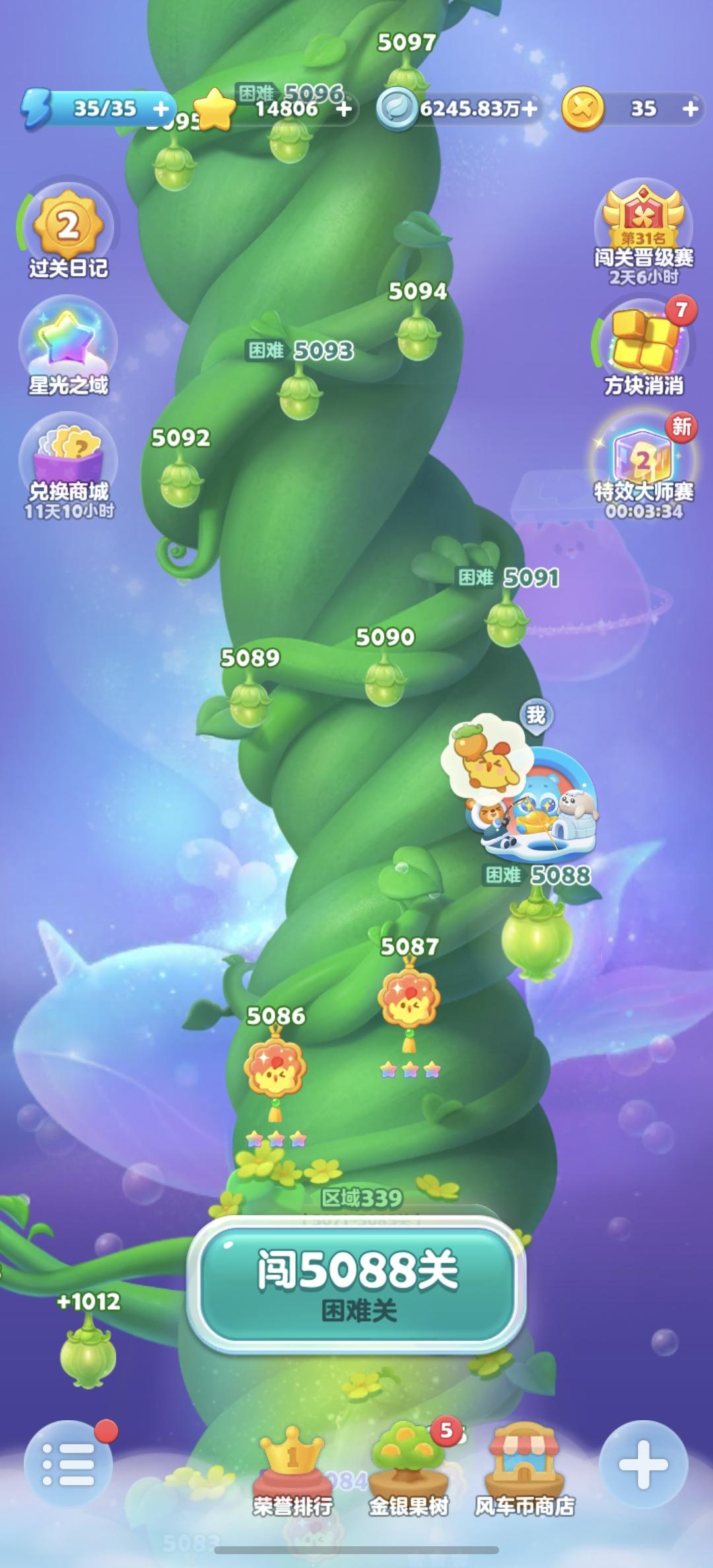 但凡是个有点人性的游戏都不会设计这么恶心的机制:天天玩会故意给你增加难度,所以我不得不隔一段时间退游一次;没有加成很难打到彩星,银币只返还几千,会越打越亏;最重要的是——一旦开始打,得肝到感觉前25名位置稳了为止,以前还好,打30多关就可以,现在呢?整个2025年,我加起来只玩了100多天,只参加了50多期晋级赛,每个号却肝了5000多关,以一期晋