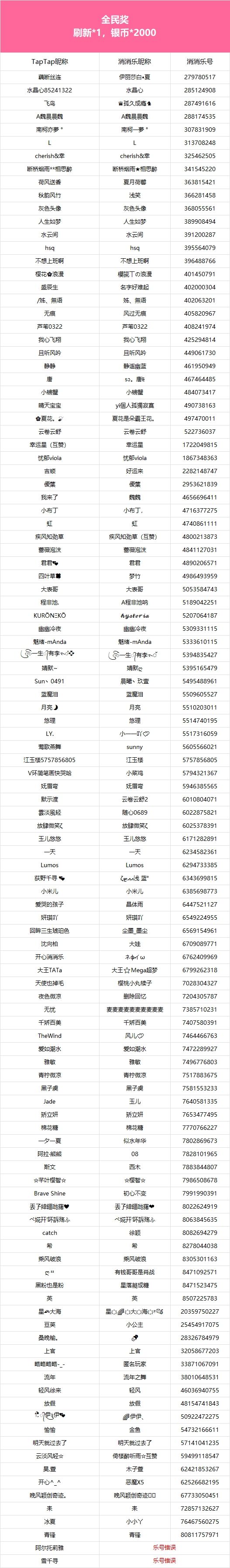 -------------------------------------❀恭喜所有获奖的小伙伴们,本次活动奖励将在7个工作日内通过游戏进行发放,还请各位小伙伴注意进行查收噢(づ ̄3 ̄)づ╭❤获得实物奖励的小伙伴麻烦添加工作人员QQ:2090841537,提供收货地址以便我们安排发货,感谢大家积极参与本次活动,之后也欢迎大家多多参与哦~-----------------------------