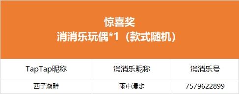 【寻春踏春好礼不断 !分享春日假期计划赢好礼!】活动现已开奖!恭喜获奖的各位小村民!本次活动道具奖励将在7个工作日内通过游戏进行发放,周边奖励将在30个工作日内发放,感谢您的支持与理解,之后也请多多支持消消乐(づ ̄3 ̄)づ╭❤※活动地址:https://www.taptap.cn/moment/524629595081670864