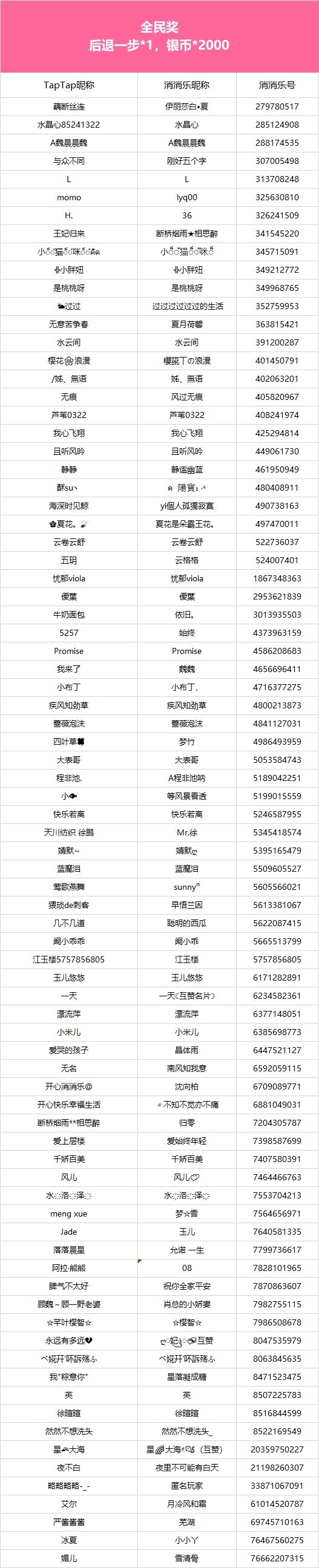 恭喜所有获奖的小伙伴们,本次活动奖励将在7个工作日内通过游戏进行发放,还请各位小伙伴注意进行查收噢(づ ̄3 ̄)づ╭❤获得实物奖励的小伙伴麻烦添加工作人员QQ:2090841537,提供收货地址以便我们安排发货~参与活动时未提供乐号、乐号提供有误,或参与活动被吞帖、对签到天数有疑的小伙伴可以在评论区或群内联系工作人员进行核实~感谢大家积极参与本次活动,之后也欢迎大家多多参与哦~---------