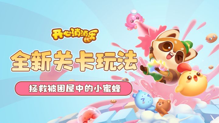 一、全新关卡玩法号外!号外!消消乐主线关全新玩法将于5月3日正式上线!本次新玩法将有小蜜蜂、小木墩、蘑菇屋、大树屋等多个元素一起登场~小木墩、蘑菇屋与大树屋作为障碍,将阻拦小村民救出小蜜蜂。通过消除小动物可以对上方对应列的障碍造成1点伤害,若使用特效击打目标,能造成更高的5点伤害。当突破小木墩的防守阵列,击破树屋与蘑菇屋之时便能解救小蜜蜂,救出所有小蜜蜂视为关卡挑战成功,快来拯救被关在树屋与