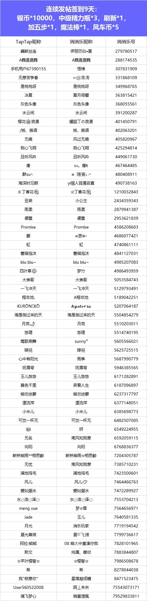 恭喜所有获奖的小伙伴们,本次活动奖励将在7个工作日内通过游戏进行发放,还请各位小伙伴注意进行查收噢(づ ̄3 ̄)づ╭❤获得实物奖励的小伙伴麻烦添加工作人员QQ:2090841537,提供收货地址以便我们安排发货~参与活动时未提供乐号、乐号提供有误,或参与活动被吞帖、对签到天数有疑的小伙伴可以在评论区或群内联系工作人员进行核实~感谢大家积极参与本次活动,之后也欢迎大家多多参与哦~---------