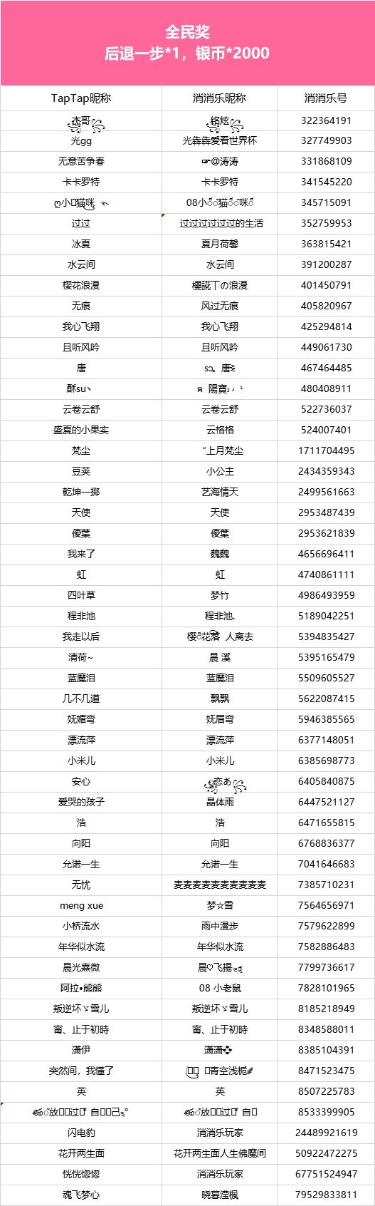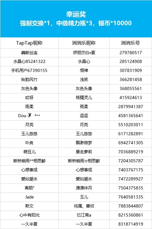 【点击领取戏曲壁纸,分享游玩感受100%赢道具!】互动话题现已开奖!恭喜获奖的各位小村民!本次活动道具奖励将在7个工作日内通过游戏进行发放,感谢您的支持与理解,之后也请多多支持消消乐(づ ̄3 ̄)づ╭❤※话题地址:https://www.taptap.cn/topic/21758873