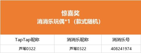 【鸿运高升战报分享!】社区活动现已开奖!恭喜获奖的各位小村民!本次活动道具奖励将在7个工作日内通过游戏进行发放,实物奖励受疫情影响暂时无法发货,待快递恢复后将依次发出,感谢您的支持与理解,之后也请多多支持消消乐(づ ̄3 ̄)づ╭❤※活动地址:https://www.taptap.cn/topic/21573921