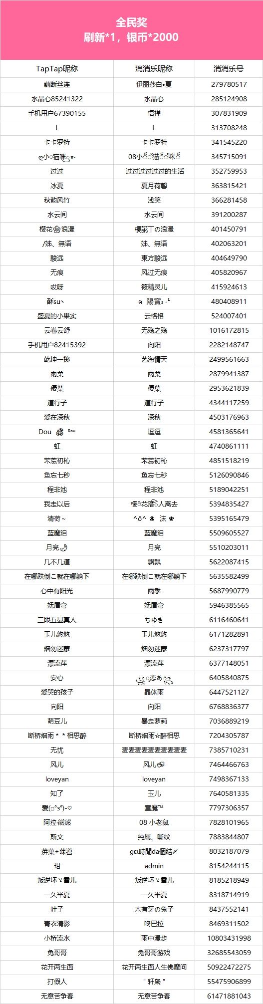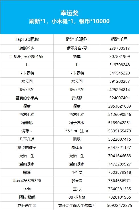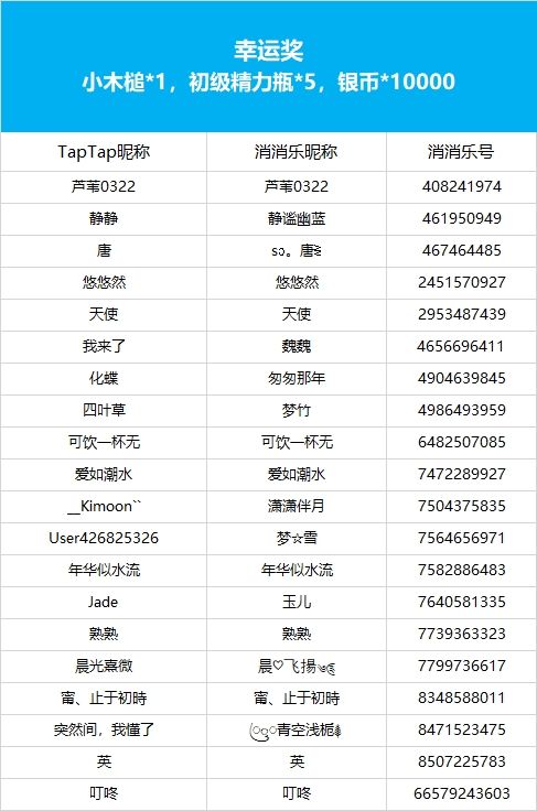 【金榜题名荣耀时,分享步步高升段位】社区活动现已开奖!恭喜获奖的各位小村民!本次活动道具奖励将在7个工作日内通过游戏进行发放,实物奖励预计30个工作日内寄出,之后也请多多支持消消乐(づ ̄3 ̄)づ╭❤※活动地址:https://www.taptap.com/topic/20920860