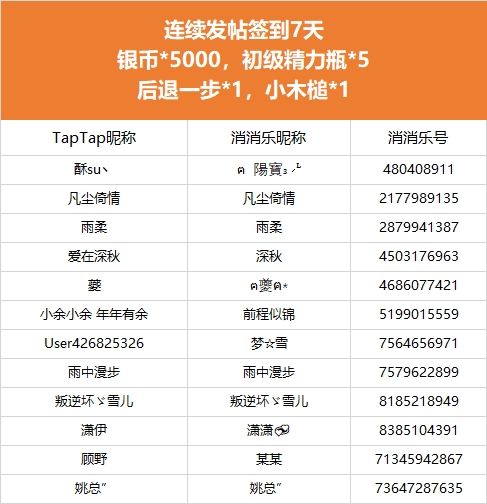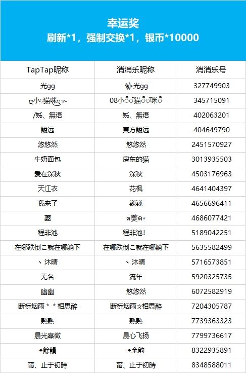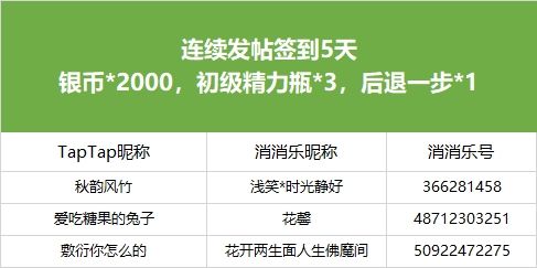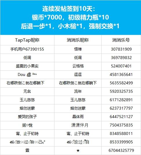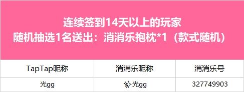 【社区打卡度春节,连签分享赢好礼!!】社区活动现已开奖!恭喜获奖的各位小村民!本次活动奖励将在7个工作日内通过游戏进行发放,还请各位小伙伴注意进行查收,之后也请多多支持消消乐(づ ̄3 ̄)づ╭❤※活动地址:https://www.taptap.com/topic/20065863