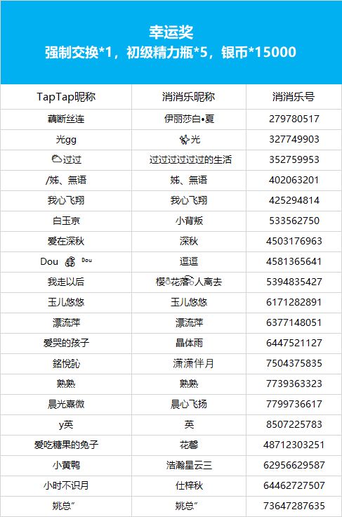 【参与社区分享,感恩有好礼相送】社区活动现已开奖!恭喜获奖的各位小村民!本次活动奖励将在7个工作日内通过游戏进行发放,还请各位小伙伴注意进行查收,之后也请多多支持消消乐(づ ̄3 ̄)づ╭❤※活动地址:https://www.taptap.com/topic/19687448
