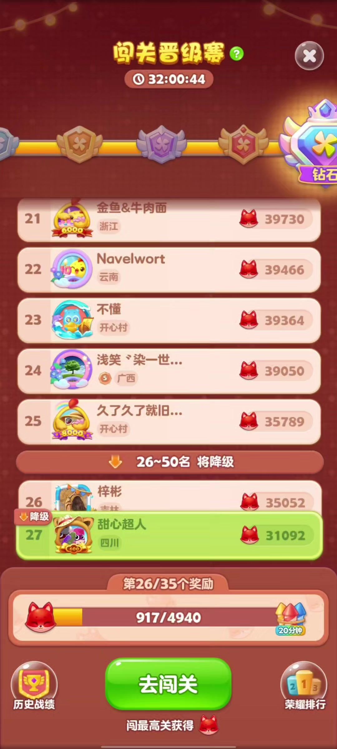 虽然本期迎来了第7波紫咪回流,但我等得好难受😣,10月6日起就没打主线最高关,厨神食堂都是纯补星和啃精英的。10.15~10.21没登,这样连续16天摆烂(>15天)包含7天不登后,第7波回流就来了。 虽然左号本期晋级赛一关都没失败过,但特别卷[表情_生气][表情_生气][表情_生气]。 周三中午,左号过了37关,3万多狐狸,结果晚上就被挤到第27名了[表情_生气]。我只能先来场“李梅烧烤”,再过