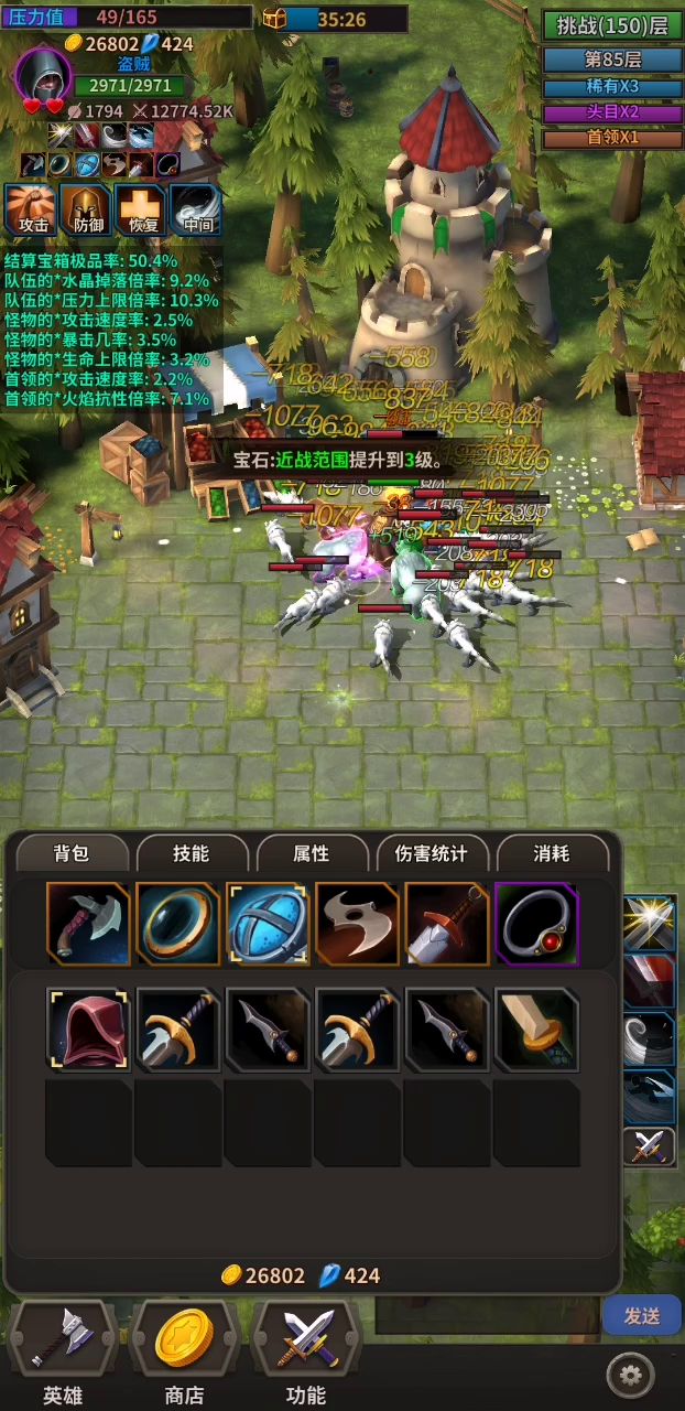 独具特色的词条洗练系统,可以在一局对战中打造出不一样的装备,随机性更强,也许会因为一条极品随机属性改变整个对局的走势。游戏中击杀BOOS能随机掉落一枚洗练石,洗练石可以给装备增加属性,三阶、四阶、五阶装备都可以进行洗练操作,但一般都是等到五阶装备成型后才开始进行洗练操作,因为洗练五阶装备属性词条最多,五阶装备前缀随机2-3条攻击属性词条,五阶装备后缀随机2-3条防御属性词条,附魔卷轴收益低一些,