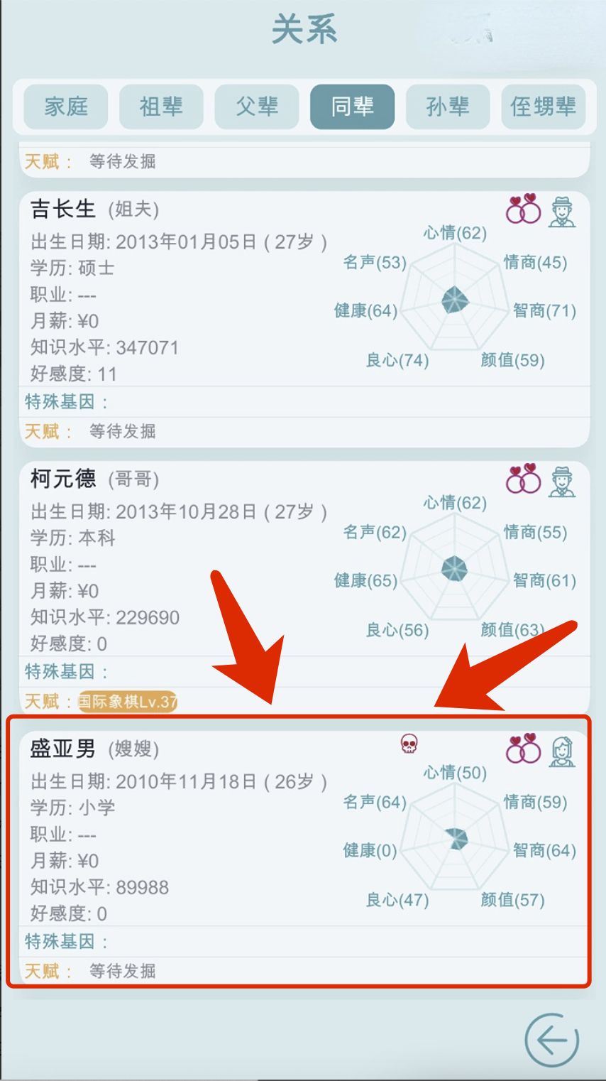 1.新增多存档模式(方便玩家同时体验各种玩法) 2.新增"朋友"界面点击恋爱或者结婚图标可查看情敌(不是)数据! 3.新增挖墙脚功能(玩家和npc可相互内卷) 4.开局界面增加对天赋基因的介绍(点击对应数据即可查看) 5.修复xxx生孩子有时候未提示的bug 6.优化npc找的对象的学历 7.降低玩家子女配偶去世之后拒绝相亲的概率 8.游戏内新增版本更新公告展示 9.新增“海王”天赋 10.人物属
