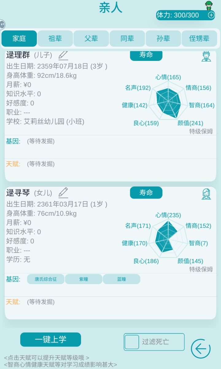 🆘第一胎,健康和智力不行,直接踢出家族了🆘第二胎,整体废物,毫无出彩点,也直接踢出去了🆘第三胎,我死了。。。但是这个孩子智力是可以的,但他也死了🆘❓️我真的没我真的没招了,这个资产已经玩了三天,说没就没。工作也升到了最高等级。我一直我一直在哭😭我真的我真的一直在哭😭