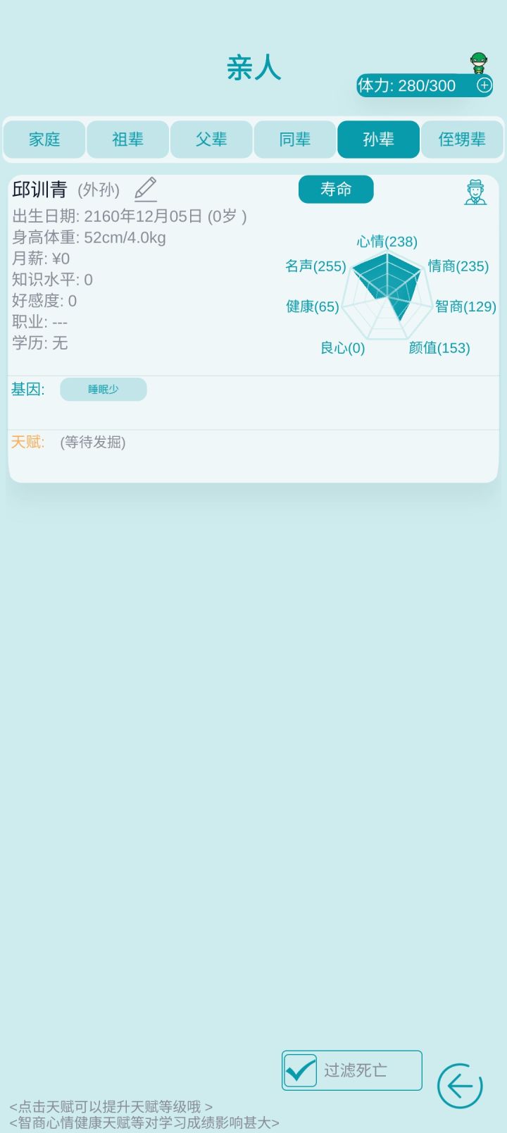 🤣我有毒……写了个家族短史【2021.06.09】😎记第一世我叫余鹏云,于2021年出生在一个四口之家,爸妈学历不高,但各有一份稳定的工作,维持着我们这个小家。我是第二个孩子,一个金牛男孩,在我的上面还有个摩羯座姐姐余子瑛。我都怀疑我姐是不是爸妈亲生的,姐姐从小双商超高,妥妥学神一枚,每次考试都是第一。而我呢,和爸妈一样普普通通,不过我倒是遗传到了妈妈的羽毛球天赋耶!!妈妈18级羽毛球,而我