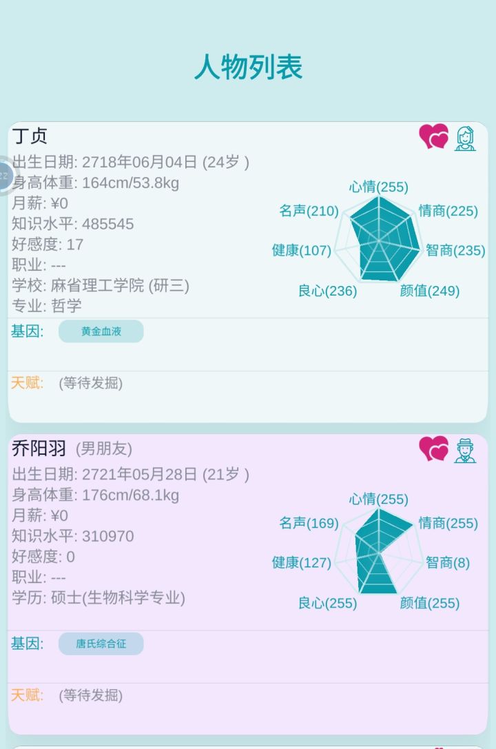 即使是99级花心,也会有被发现偷情的风险,一旦被发现,就是存款平分。不过结婚的好处是亲热只需要20点体力(每年30次),而情人的亲热需要25点(每年24次)。假如我想跟多位异性建立联系的话,就不适合结婚。但是不结婚又有可能触发情人的结婚请求,会有三个选项,第一个选项是跟她结婚,第二个选项是等等(不知道是什么效果),第三个选项我只是玩玩会导致她好感度降到负数关系破裂。最幽默的是前任交朋友邀请我