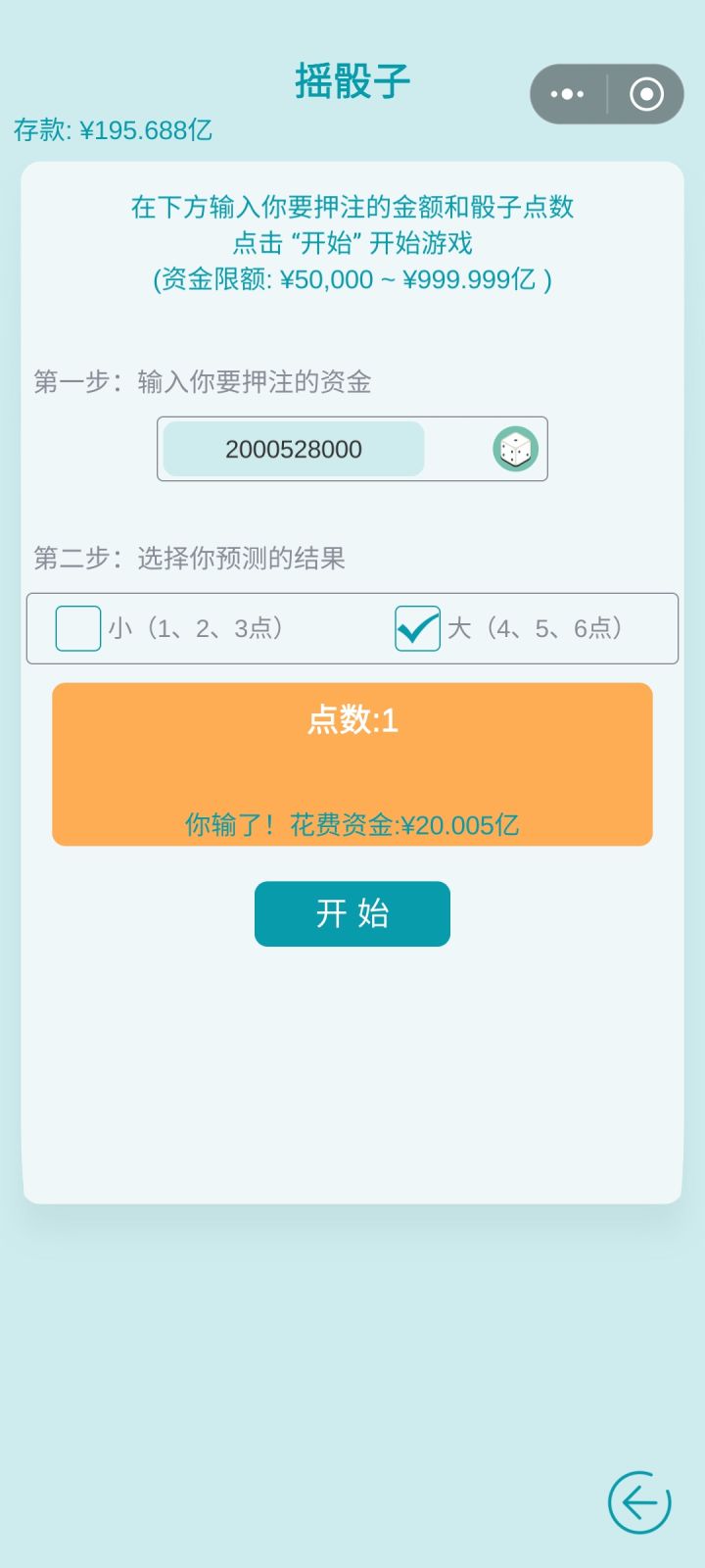 游戏后期没钱了?怎么办!?都给我去有奖竞猜!输了资金,赢了就是本金+奖励[本金*2]!战损比1:3!超高保底普遍50%中奖率!不消耗体力!