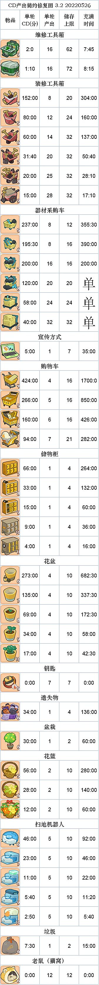 2022.06.18 11:57 未发现任何改动,维持原判 2022.06.10 13:03 版本更新,有部分道具做了改动,正在更新 2022.05.26 23:52 修复猫窝12发 by@Shell @天秤座的独角兽 扫地机器人图片顺序错乱 by@Puppy 2022.05.23 23:59 上传最新清晰修复图 看起来更舒服,去掉了无数据行 (如各位老板能提供数据真是感激不尽) 使用起来更简洁 感