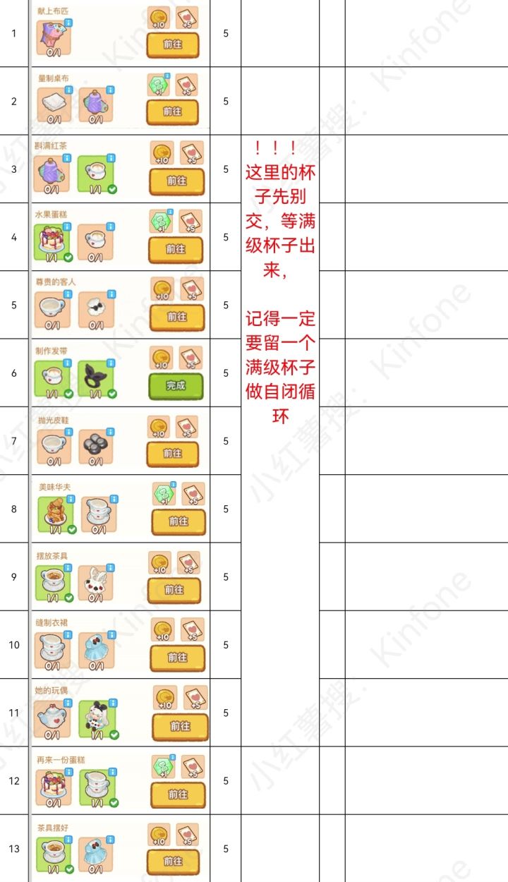 2.杯子不能直接交任务要凑够满级桌子循环一下,确保棋盘上至少有两个满级桌子。