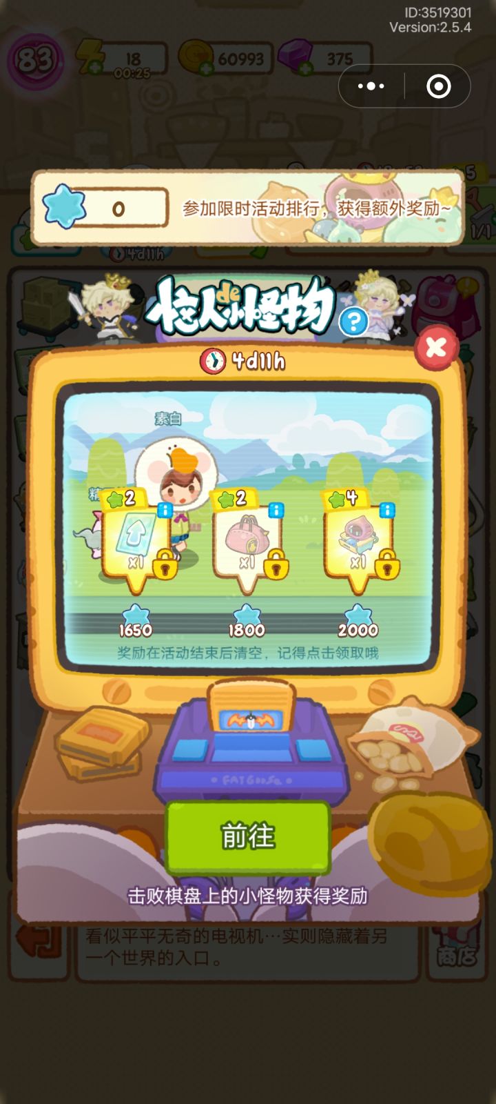抠起来了呀!最后三个礼物居然是这样的。是不是拿到旅行包就可以结束了?因为家具本来就是集不齐的╮( ̄⊿ ̄)╭得把最有吸引力的奖励放最后一个——我这样说,不知道算不算教gch如何更狗。哦,策划根本不知道什么对玩家最有吸引力,那没事了。---对了,这个狗比电视机传送门的CD非常快,所以卖小怪应该也是玩法的一部分。