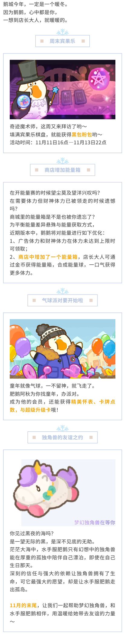 暑气渐散,热情不减肥鹅健身房带着一大堆更新走来了一起来看看都有哪些小惊喜~1、全新区域开放师兄遇到强劲对手,金腰带最终花落谁家?81级即可解锁全新区域【拳击区】霸气外露的新鹅到访踢馆,还有众多装饰物可以获得快来观赏拳王争霸! 2、委托任务系统上线有什么离奇问题降临在肥鹅客人身上?店长大人能否深处援手进行帮助?首个委托任务将在 46级开放,帮助肥鹅客人解决难题~3、区域解锁规则