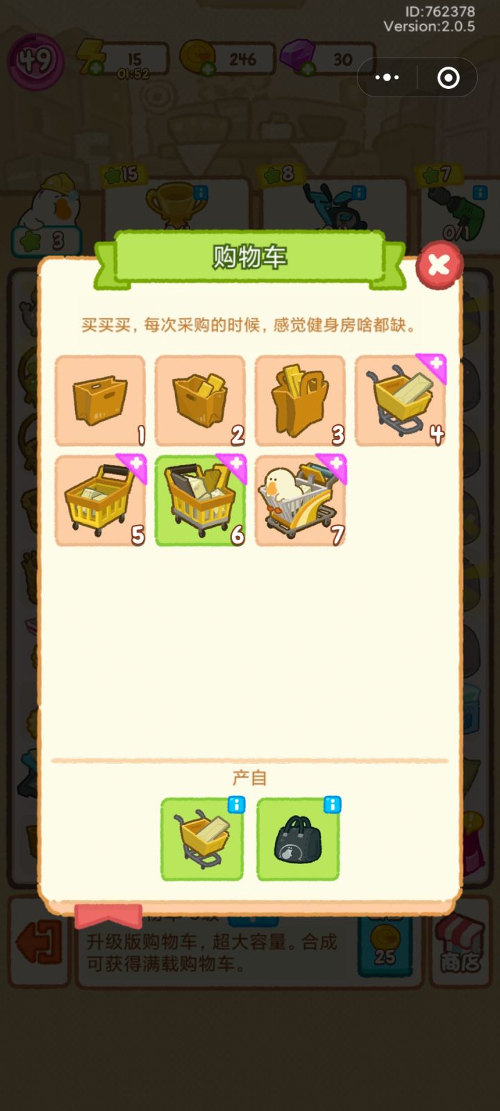 2.做完第一项之后,点击等级4以上的购物车产出储物篮,然后合成。(至少要合成到直至储物柜系列解锁等级6)。