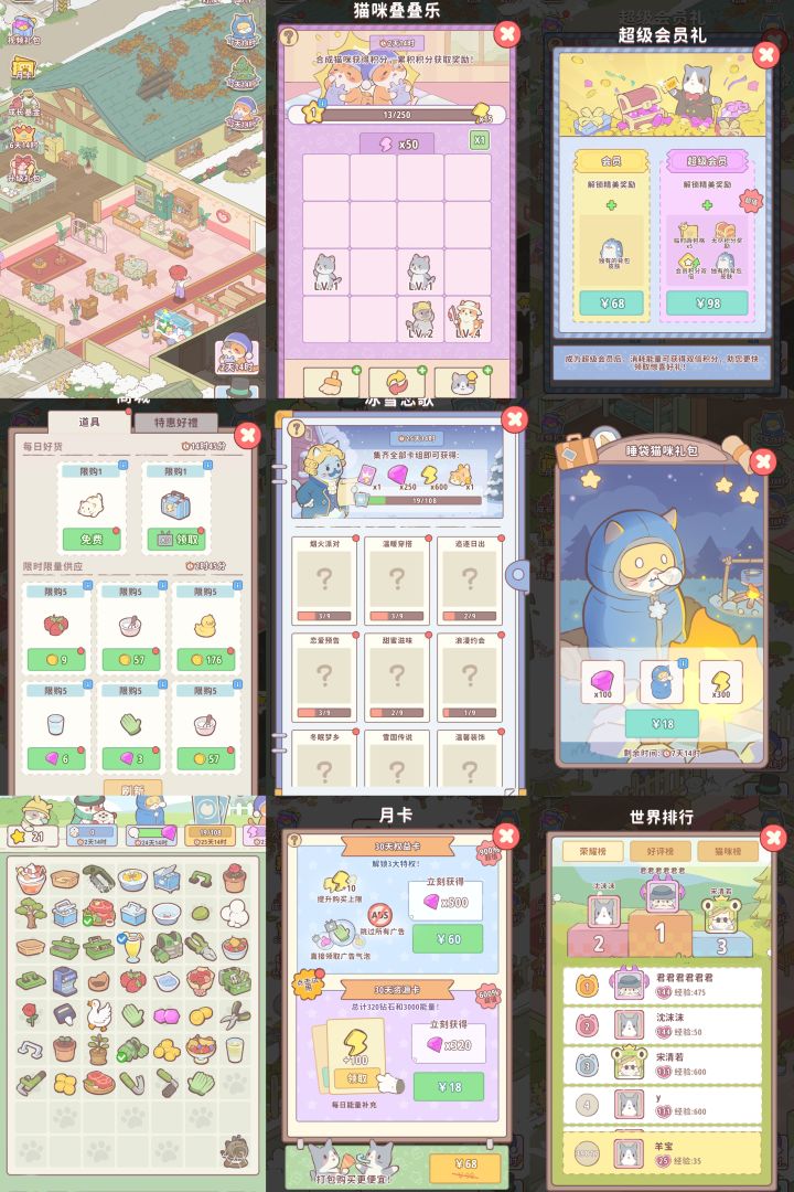 ①「狸狸汤泉」⭐️游玩方式:小程序(官方说会出app)⭐️推荐指数:✔️✔️✔️✔️(满分5分)⭐️评价:①开服时间较晚,目前最高等级为79级。②礼包不算太贵,买一个月卡我个人认为足够用了。通行证价格也还可以。③画风还可以,个人认为是中等偏上的,棋子画风也很好看,界面干净整洁。④活动玩法比较传统,任务合成难度也还ok。买家具是通过金币购买,所以在棋盘里积攒的金币也可以用来购买基础家具,