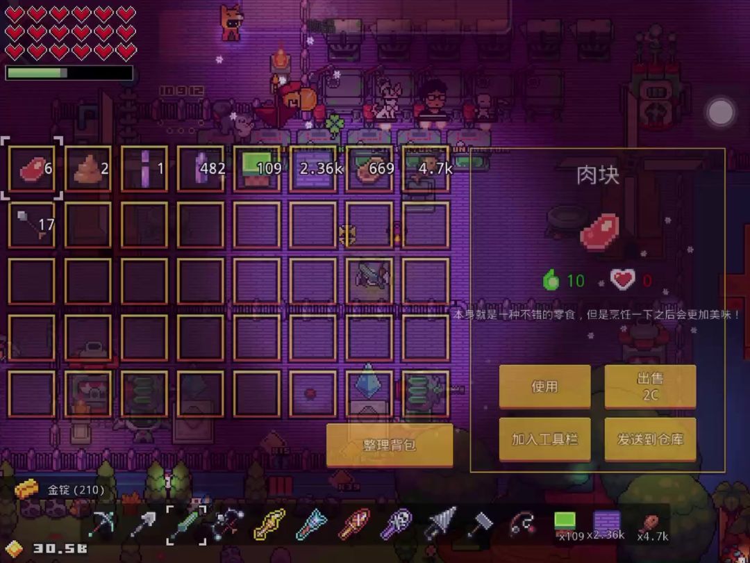 1 2 3 进入正题! 放置熔炉选择煤炭 点击最大 然后减1 点击合成 然后再次选择煤炭合成 第一次合成的材料都会掉出来 再取消制作 快速把合成页面关掉 点击捡起地上多的那份材料(多加练习) 这样你的材料就翻倍了 刷到自己满意为止 然后卖掉 即可获得满级加几乎无限金币的开局(想要完成亿万亿富翁成就的请刷到1T再卖)