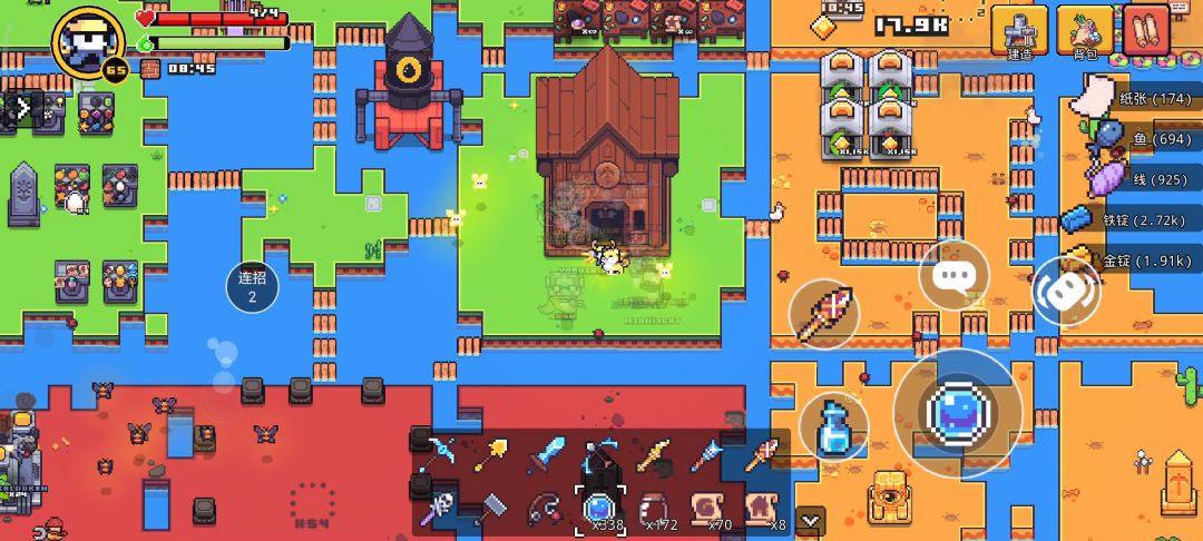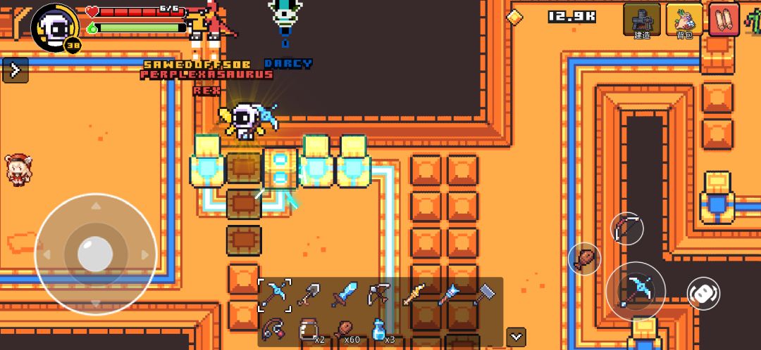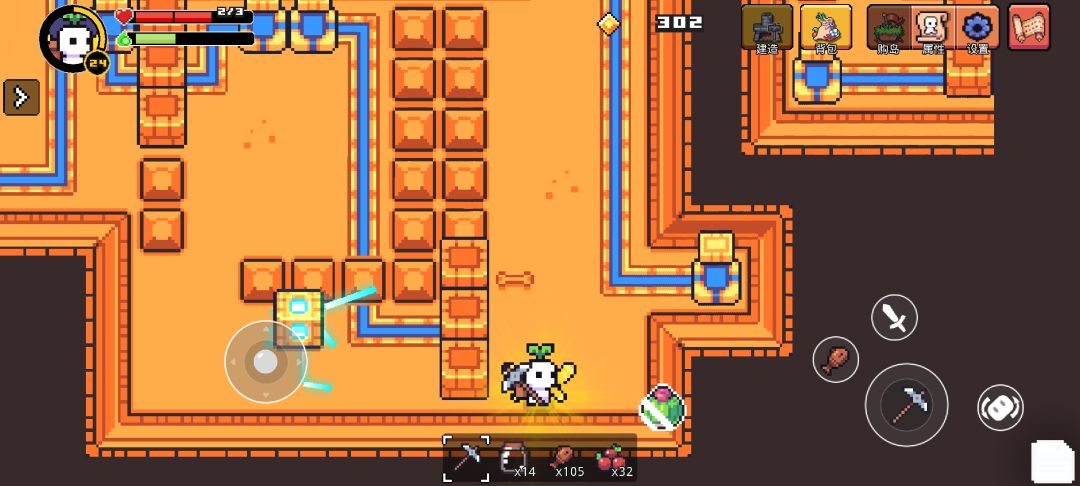 去图1这里翻滚 想办法让boss靠近你,然后只能用镐子攻击 可惜进去不了房间,捡宝箱