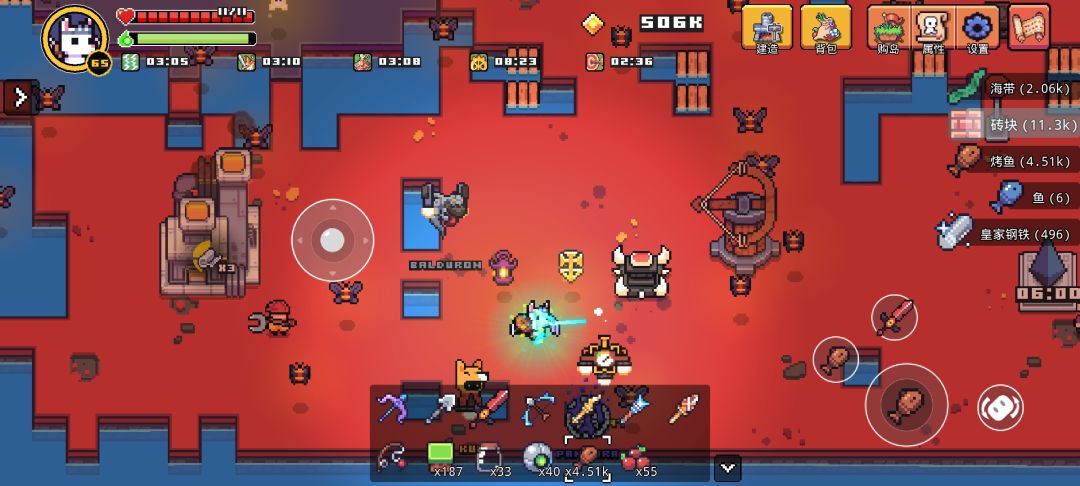 也可以也可以早期用,早期就建一个拆一个,直到刷出需要的物品(贪心剂,血怒鸡尾酒,史莱姆王)虽然有点多前期很难攒出这些钱。打开背包或者建筑界面史莱姆王会攻击,但玩家不受到伤害,这样可以一直挂在那边,就是要注意别离建筑太近,以及注意数量,嫌慢可以打到狂暴。用贪心记剂很快就会把钱赚回来,用血怒鸡尾酒那么多史莱姆很快就能给史莱姆王炸死。
