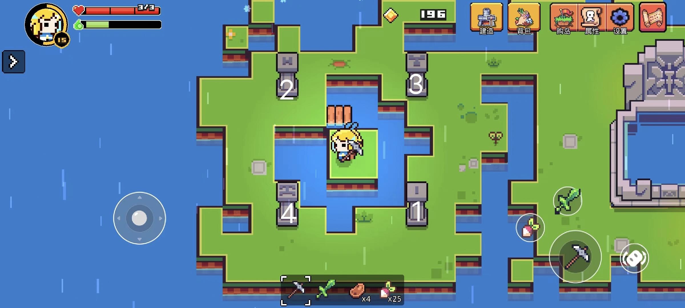 如图,四根柱子的解谜是看柱子顶端的图案,破解顺序是从简单到复杂,全按下后宝箱就会出现! #浮岛冒险