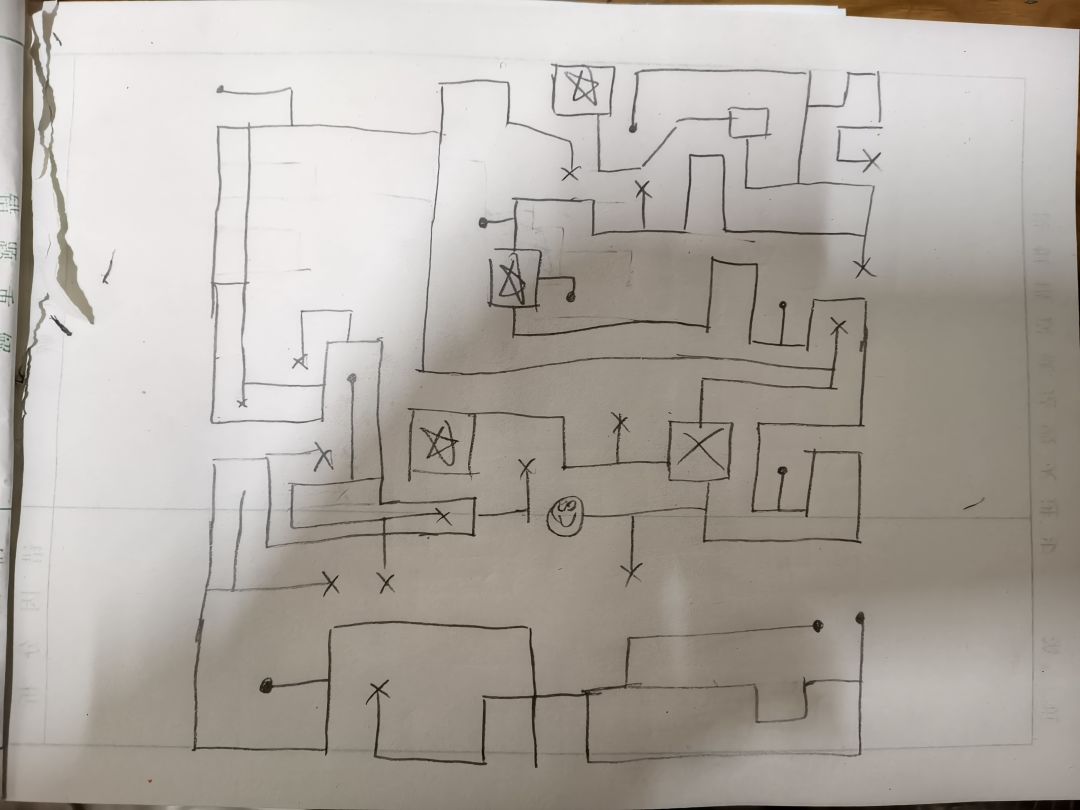 黑点为奖励 叉号为死路 星号从下到上分别是祭坛,法杖,徽章,画的有偏差 大体一致