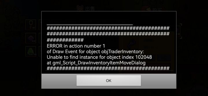 岛上刷了个商人,买的东西好像有虚空玫瑰,虚空钢之类的东西,虽然没见过,但看着挺牛逼的,想换一下,结果刚点击要换的东西,游戏就弹出了这样一个弹窗,然后崩了,这个是bug吗?