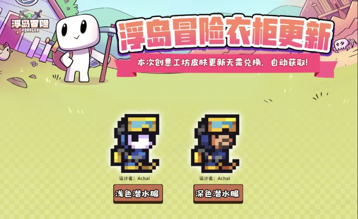 各位岛主,提前跟大家说一声新年好!春节期间,《浮岛冒险》将在2/13-2/26开启新一轮折扣。App Store 和 TapTap 折后价 ¥12。今年我们也给大家带来了几款新皮肤!2月6日,同样由心动代理发行的《潜水员戴夫》手机版正式上线。浮岛的老朋友作者Achai,在浮岛的世界准备了《潜水员戴夫》彩蛋皮肤!最新版本无需兑换,可以直接获取!本次更新安卓已推送,iOS需等待过审。(安卓