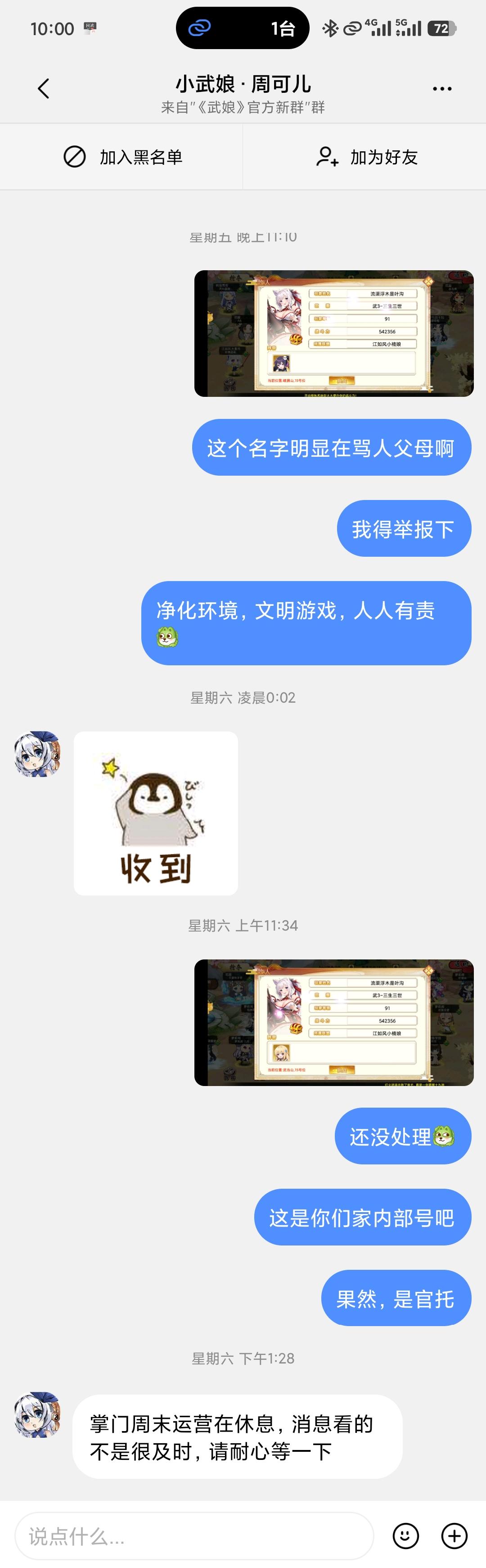 举报了骂人的名字5天了,还没有改,果真是官方人员,托托相互!怕不是那个骂人的账号就是官方自己人搞得小号吧