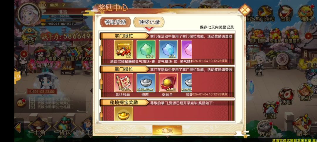 除了兔子碎片该拿的算是都拿了,省流: 18w多,一件萦尘自选,一本左右,一个六级百分比,一个ur卡牌自选,一个巅峰神器箱,一颗三级坐骑速度宝石