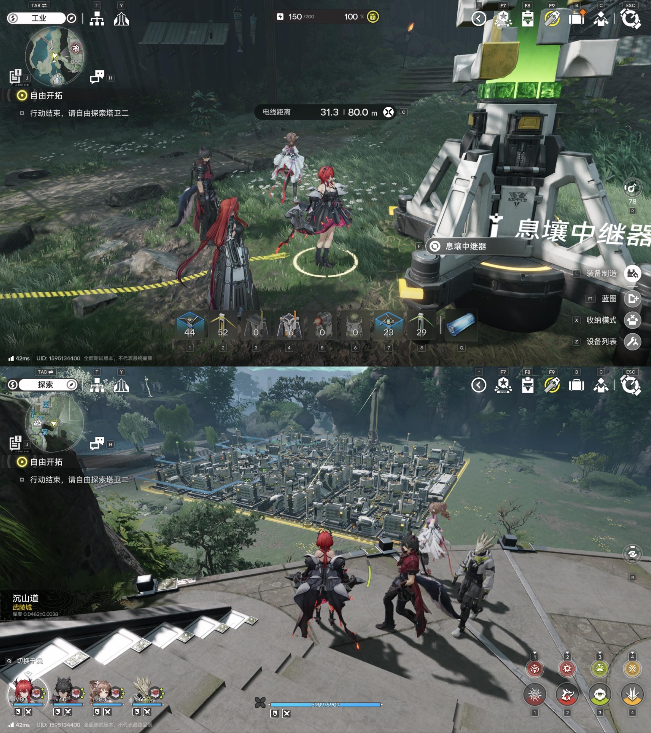 6、工业基建方面,一图四号谷地和二图武陵之间不互通,地区建设要达到一定等级之后才能比较方便地传输。每个地区都有一个建设功能,包含据点建设、物资调度、仓储节点,武陵多一个环境监测,建设可以花费和获取本地的调度券,达到一定等级触发任务。据点建设是交易工业产物获取本地货币,物资调度是抽卡券、养成道具、五星武器、宝箱醚质探测器、干员好感礼物购买和期货倒卖(当倒爷是真的好玩),仓储节点是不准传送、跑步、跳跃、受伤的送快递,环境监测则是拍照。这里让我感到无聊且麻烦是这个预警系统,布置数量受限的攻击塔打倒裂地者,以提升交易所得建设值,你的据点内容已经够多了,就不要弄这种多余的事。四号谷底已经较为完善,整个流程就是拉电挖矿、采集种植、提升电量,然后不断拉长产线生产更高级的产物材料。这里要提的是地区扩建感觉没有必要,都基建了才这么点地,仓库存取线需要解锁倒是正常。而共享蓝图是个好功能,但由于每个人地区建设进度不一样,未必能找到适用你现阶段的蓝图,超出范围了解一下。武陵由于未完全开放,建设起来还受制于天有洪炉的息壤,非常便秘。像我就陷入了没有调度券、没有电、没有息壤制造设备和卖出调度券的窘境。以至于在这里抄他人的蓝图要么没有仓库存取线放置不了,要么电量爆表没法生产。解锁和提升工业计划需要获得工业点数,也就是与地图上的回形针交易即可,之后可以进去模拟空间练习响应的工业设备并获得奖励和部分蓝图,功能不错但蓝图太少,很多过长的产线没有蓝图极大地增加了学习成本。工业简报还不错,可以直观的看到产物收支是否平衡,还有不用到本地去就可以检查发电量。
