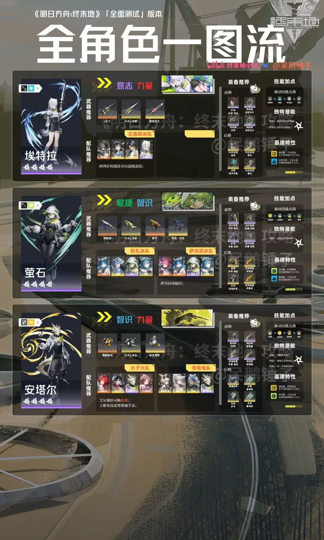 关于武器,从左到右依次排序推荐; 装备配装则,考虑通用性,例如物理队也可以出四失衡套打,但不一定通用,专精/竞速/高难挑战的打法配装需要自行根据自己的角色潜能、装备情况研究修改。 ——————————— 补充几点比较重要的问题 Q:紫色装备词条和部分角色的定位不搭配,为什么要这样搭配? A:紫色装备是过渡,类似四星的武器,主要词条对就好,别怕浪费。合理的基建规划线路下,生产挺快的。 Q:关于黎风,