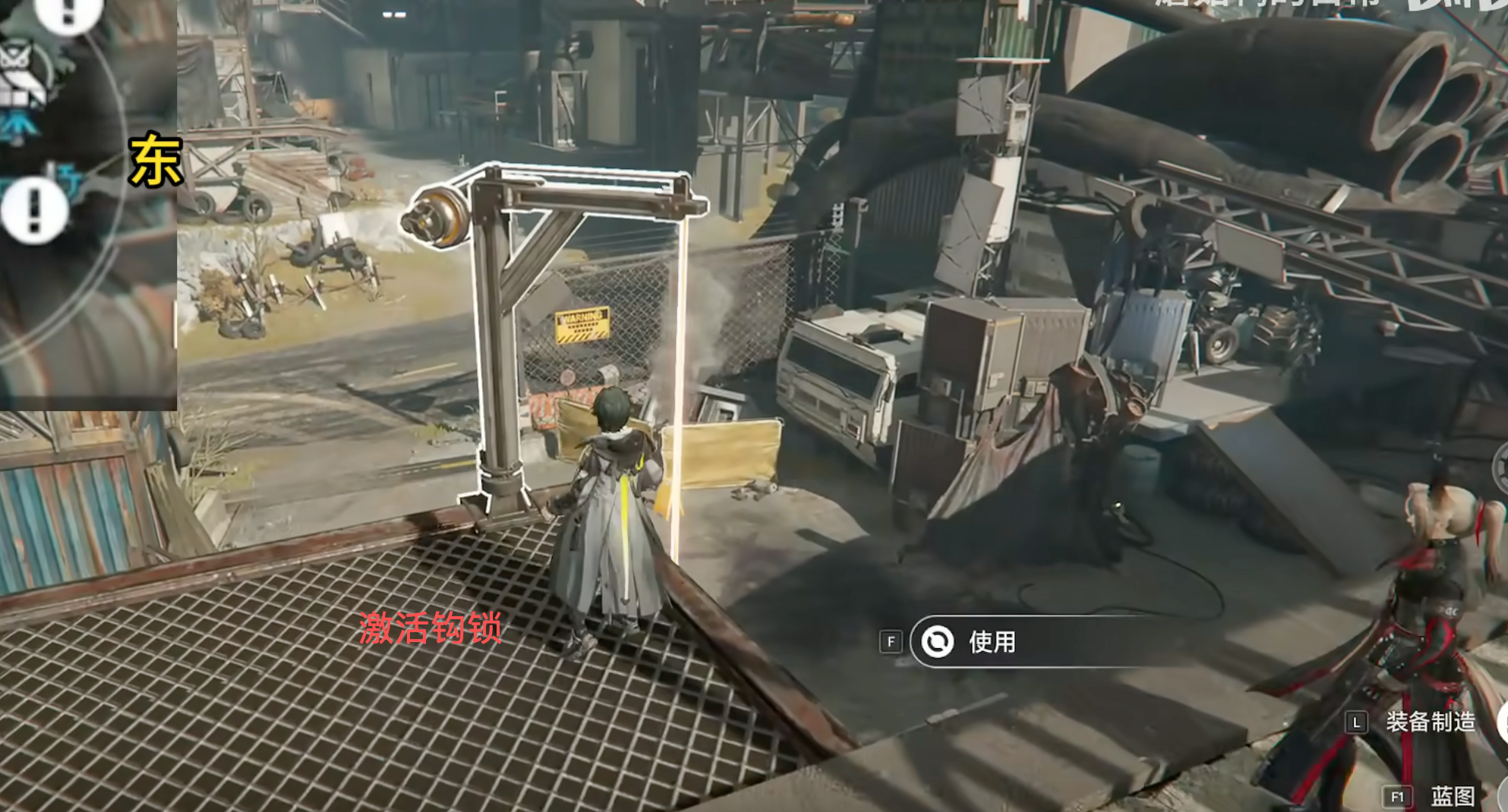 到了点位后,先下楼梯,使用一下激活钩锁,再激活边上供电终端,然后传回临时避难所的难民居住点开始朝东方向电力运输(拉7个中继器),然后回到钩锁底部并上去,把电线连接到最开始的供电终端,回头找到有风小圈,按空格跳上去,再跑到醚质位置就能获取。