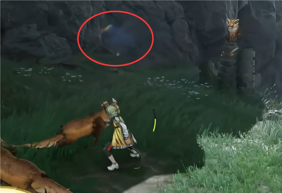 被三只小熊猫围着的地方有个隐形的醚质,对它使用扫描让它显形。