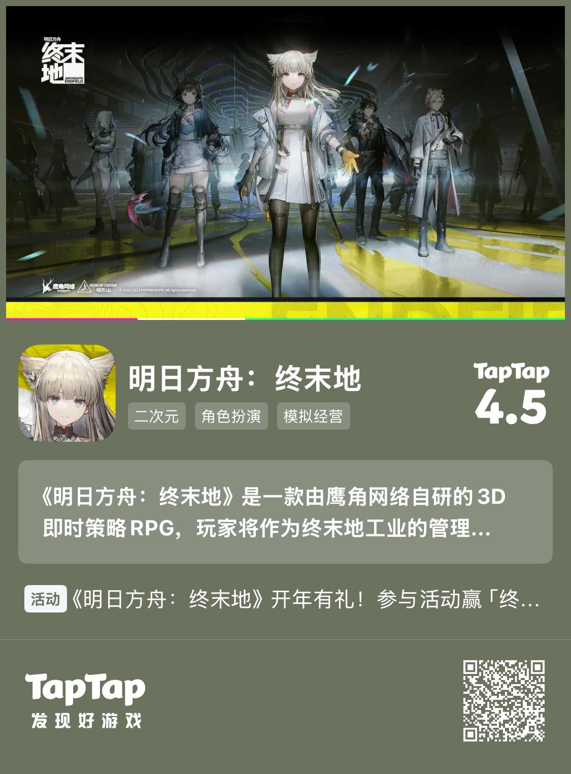友情提醒:开年活动,要在本帖回复游戏相关表情包或游戏建议评价的截图,直接回复会被过滤哦!!!!!各位管理员,新年快乐!新年伊始,TapTap依旧给各位管理员准备了有奖活动~在本楼参与活动,满足条件即可参与抽奖,即有机会赢取【终末地-BETA系列徽章】、【终末地-BETA系列多功能立牌架】等丰厚福利!1、表情包跳蚤市场每一个社区的活跃,都离不开表情包的帮助。您是否也有珍藏已久的《明日方舟:终末