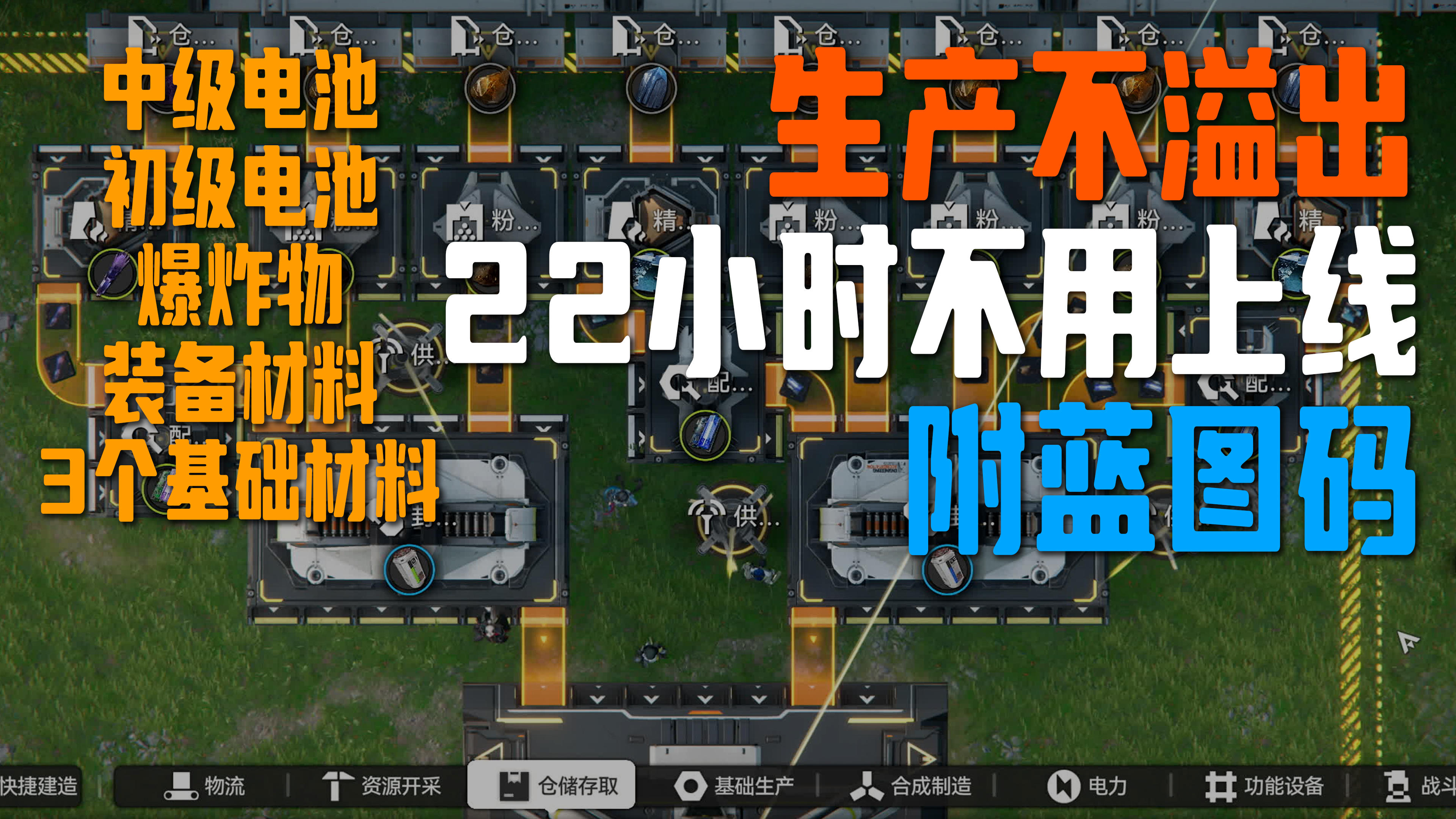 《明日方舟:终末地》蓝图分享码 EF015i2U27A4au6eIoe 请复制后前往游戏中使用。日常消耗跟换东西绰绰有余,科技在蓝矿以下 无需传送带 依靠箱子储存模式来充当收集点传给下位加工提高效率,蓝矿可以暂时放山谷那边基地来加工。等基地扩完在出全图加工