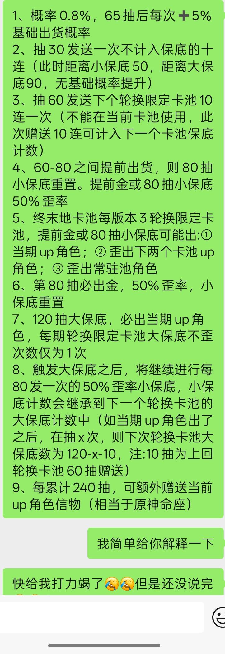 优点:适合不急不躁的玩家,每天玩一到两个小时,就目前现版本可以玩几个月,基建特别杀时间,美术画风精美。总得来说,抛开抽卡不谈的话,游戏内容量大管饱。缺点不多说了,就详细聊聊这个抽卡吧,字太多,看图吧