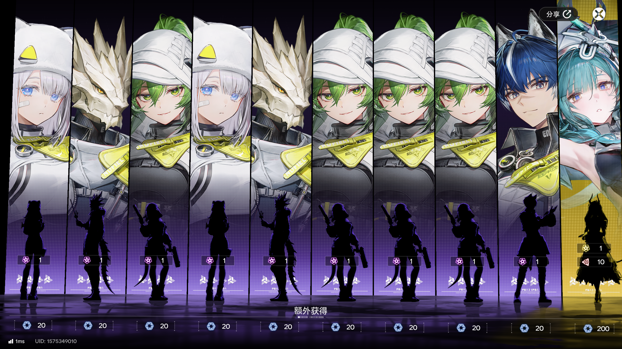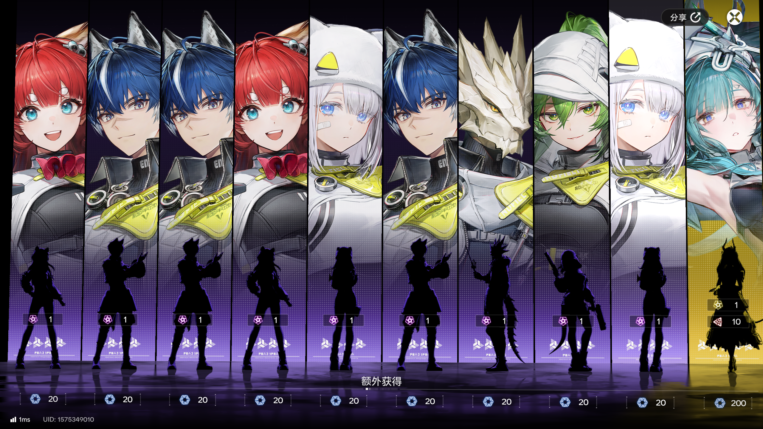 本来玩基建挺开心的,哪怕现在刷抖音很多说这游戏烂,但是这游戏基建真的挺吸引我的,刚刚上线收菜挺开心的发现还送发十连更开心了,就去抽了,结果是第一张图,就觉得自己真背啊,看着钻差不多就跑了会儿图攒了4500钻抽了第二次十连,一模一样,震惊了,然后抽到免费十连了,寻思不至于,点完第三张图,说实话,抽完直接恶心到了,本来有8分喜欢,直接-100,直接ALT+F4关游戏卸载了,第一次玩游戏玩到恶心,还好只