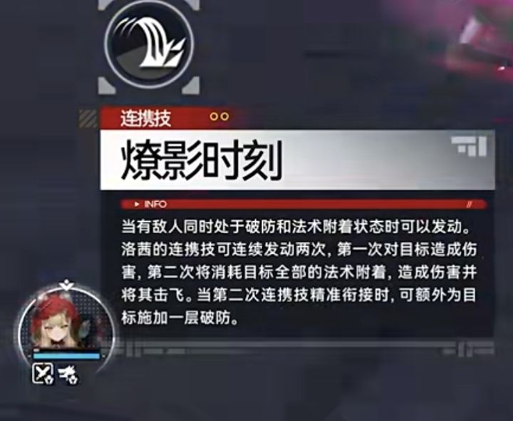 众所周知,昼雪战技盾反成功后返还技力,并施加寒冷附着与此同时,主控受击触发余烬连携,施加一层破防完美触发洛茜连携施加两层破防使用洛茜战技施加印记和一层破防;最后管理员四层猛击收尾有盾有奶物法混伤,不缺控制手法拉满了洛茜连携需要敌人同时有法术附着和破防才能发动,消
