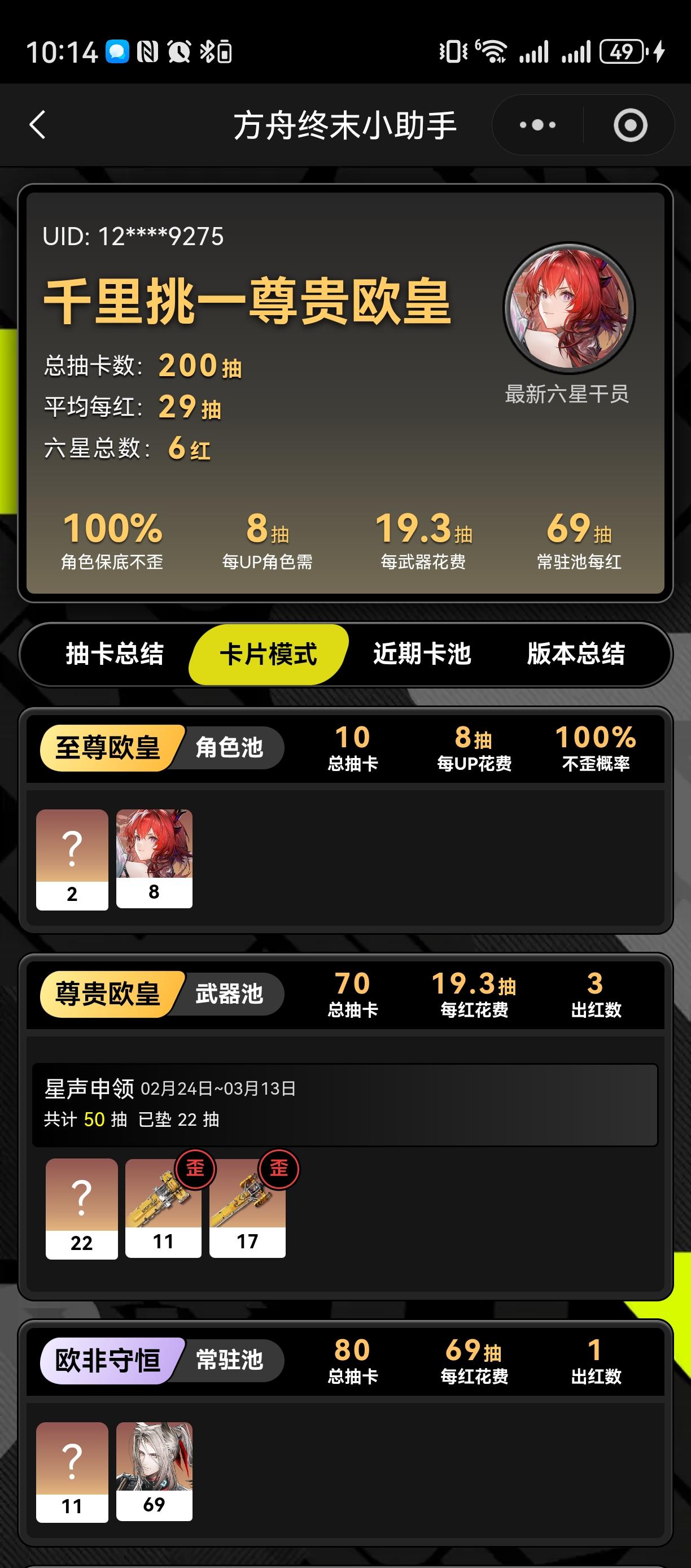 用今天签到的两抽再加上换的四抽直接又一个,之前我看到欧的人不少,他们也歪其他池子,因为终末地的池子规则是三个池子同一个的,它这个赠送的五抽还有换的话五抽左右只能抽当期池子会过期,只能又抽了5抽又有了,这池子是综合池子一个版本三个up都有可能抽到的,很多人歪了其他up池的还有的歪常驻,我一开始玩看着自己90抽小保底才出还以为我挺非不敢想又能抽到,可是我一个莱万汀都没歪90几抽两个太爽了,是最良心的二